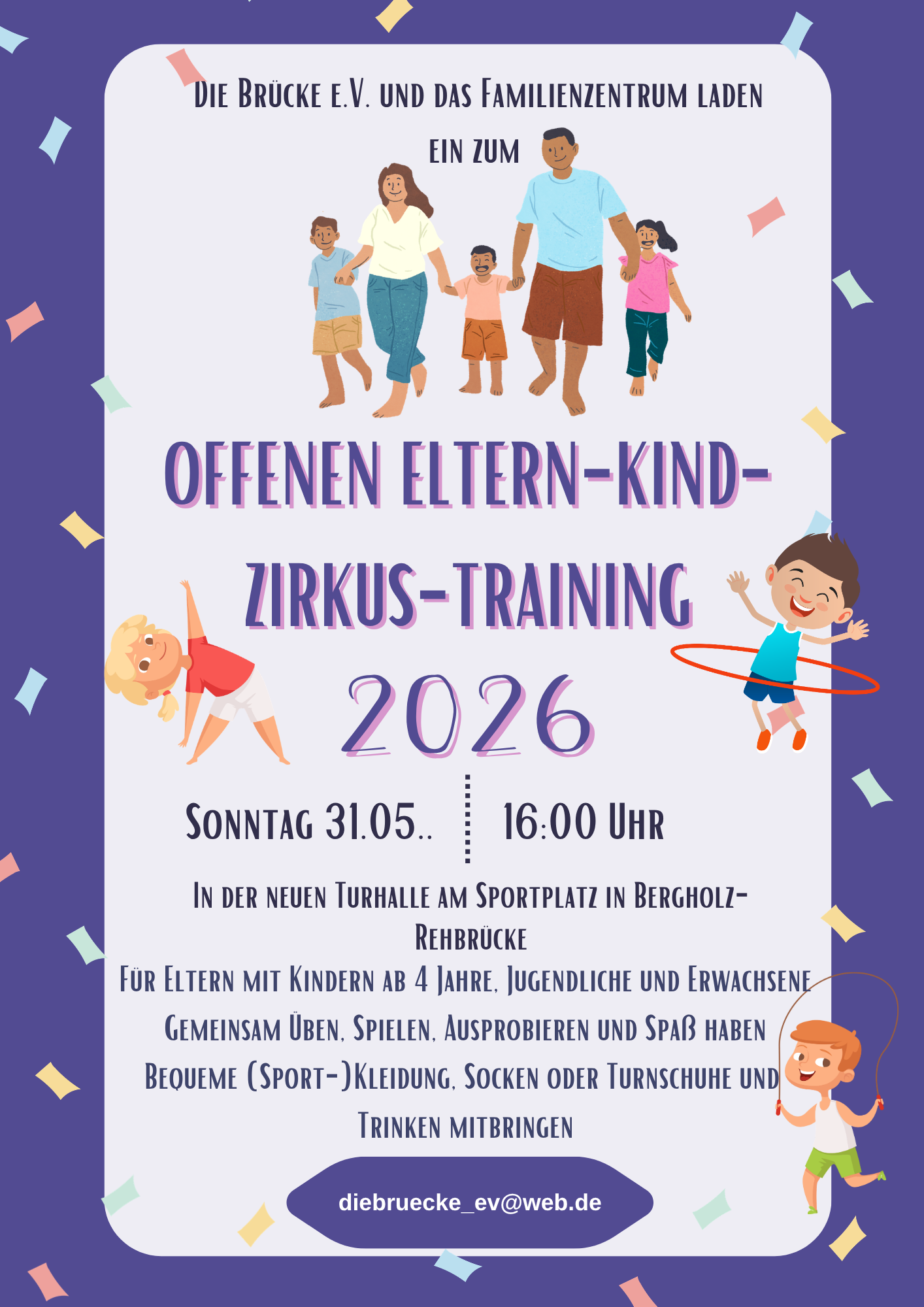 Wir freuen uns auf Familien mit Kindern, die sich an Jonglierbällen und Diabolos ausprobieren wollen, ehemalige Zirkusmädels und -jungs, die schauen wollen, ob sie noch Kugellaufen können oder auf Erwachsene, die schon immer mal lernen wollten, auf einem Rola Bola zu stehen…